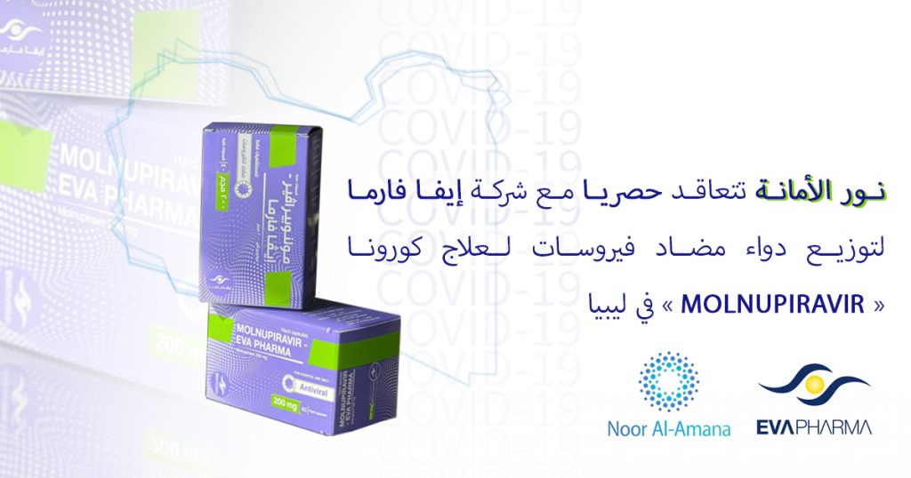 نور الأمانة تتعاقد حصريا مع شركة إيفا فارما لتوزيع دواء مضاد فيروسات لعلاج كورونا MOLNUPIRAVIR في ليبيا